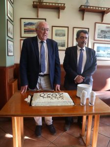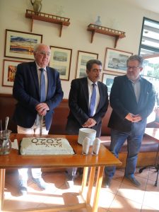 Πραγματοποιήθηκε την Τρίτη 4/2/2020 η κοπή της πρωτοχρονιάτικης πίτας 2020 του Δικτύου Δήμων Π.Ε. Νήσων Αττικής με τα μέλη, τον Δήμαρχο Κυθήρων και Πρόεδρο της ΕΔΠ CLLD/LEADER 2014 – 2020 κ. Ευστράτιο Χαρχαλάκη, τον Δήμαρχο Πόρου κ. Ιωάννη Δημητριάδη, τον Δήμαρχο Αίγινας κ. Ιωάννη Ζορμπά, τον Δήμαρχο Ύδρας κ. Γεώργιο Κουκουδάκη και τον Δήμαρχο Σαλαμίνας κ. Γεώργιο Παναγόπουλο να δίνουν το παρόν.