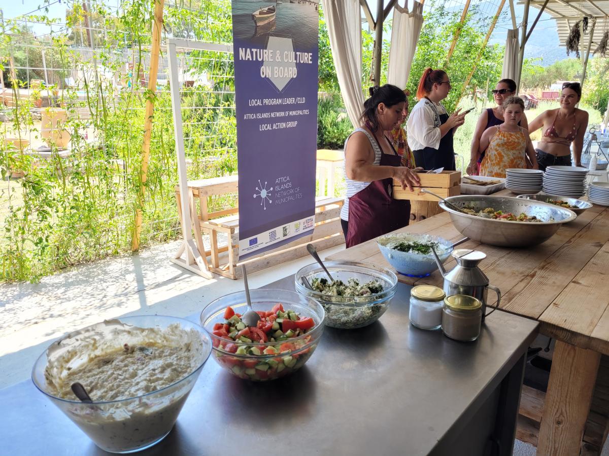 Στον Γαλατά, το Δίκτυο Δήμων ΠΕ Νήσων Αττικής κατέγραψε εικόνες από την παραγωγή και τη γαστρονομία της περιοχής, αναδεικνύοντας τοπικά προϊόντα, γεύσεις και συνταγές. Η διοργάνωση από το Δίκτυο Δήμων ΠΕ Νήσων Αττικής περιλάμβανε υποδοχή επισκεπτών στο κτήμα Odyssey Eco Farm Glamping, συλλογή τοπικών υλικών από τη φάρμα, μαθήματα μαγειρικής με την κα. Κατερίνα Σακελλίου και παρασκευή τοπικών εδεσμάτων. Ακολούθησε γεύμα στο κτήμα και συζήτηση-ενημέρωση για τα οφέλη στο περιβάλλον, την οικονομία και την υγεία μας από την κατανάλωση των εποχιακών, τοπικών προϊόντων στη μαγειρική.